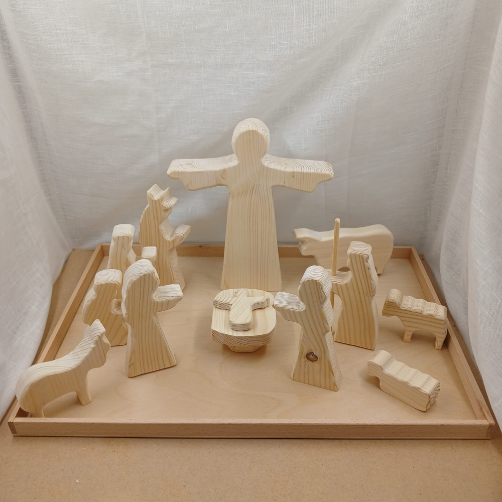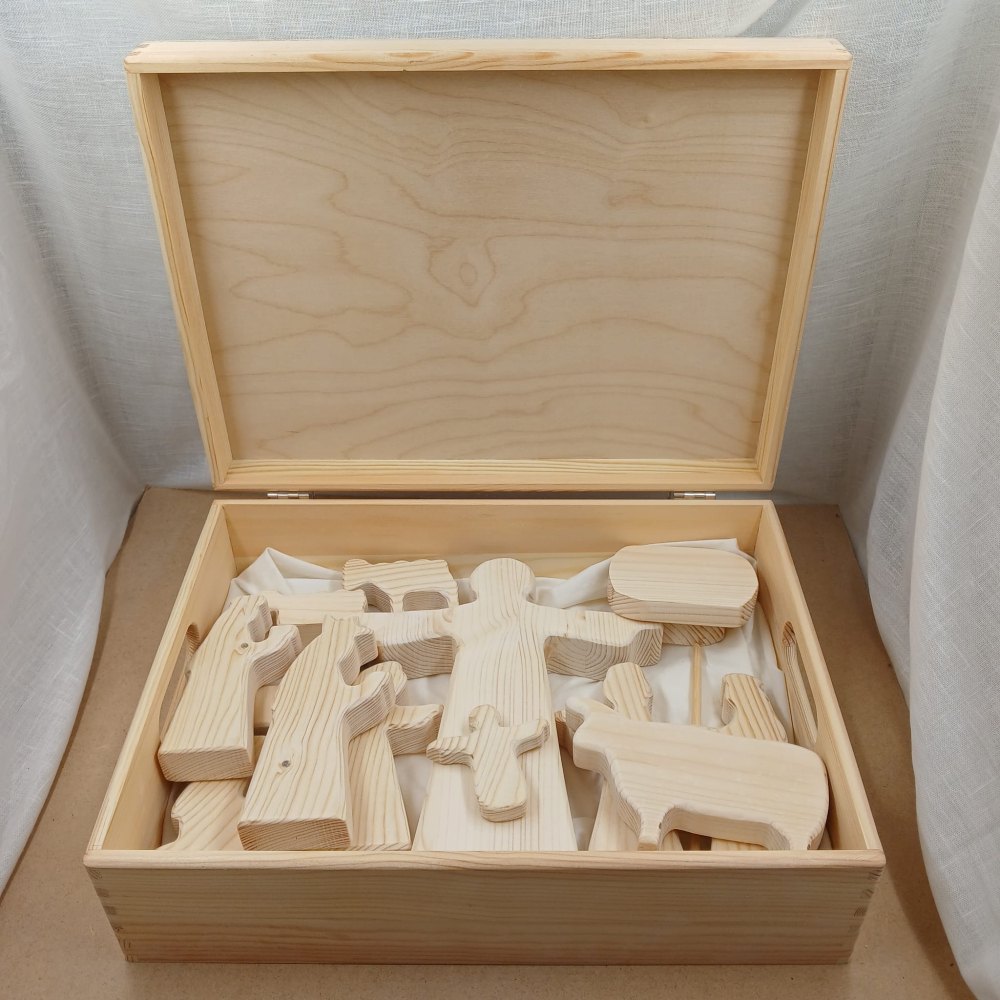 Deze versie is uitgevoerd in massief vurenhout. Het hout is minstens 27 mm dik, waardoor de figuren goed blijven staan. De randen zijn prachtig schuin afgewerkt en het voelt heerlijk in je hand!
