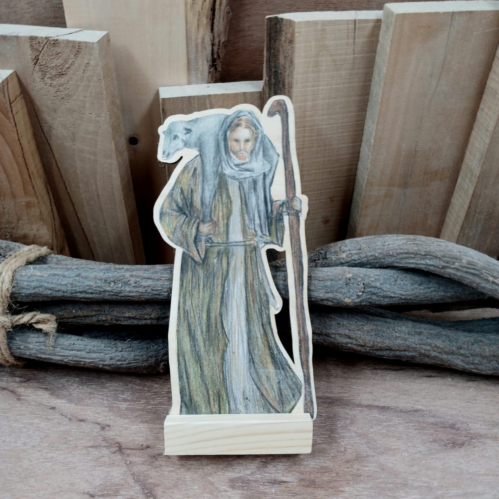 De herder is 19 cm hoog en de schapen zijn 7 cm hoog.