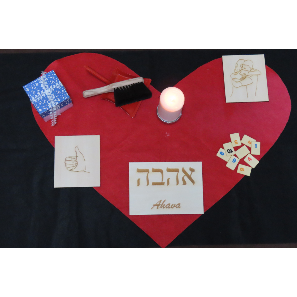 bordje met het Hebreeuwse woord Ahav er op geschreven,