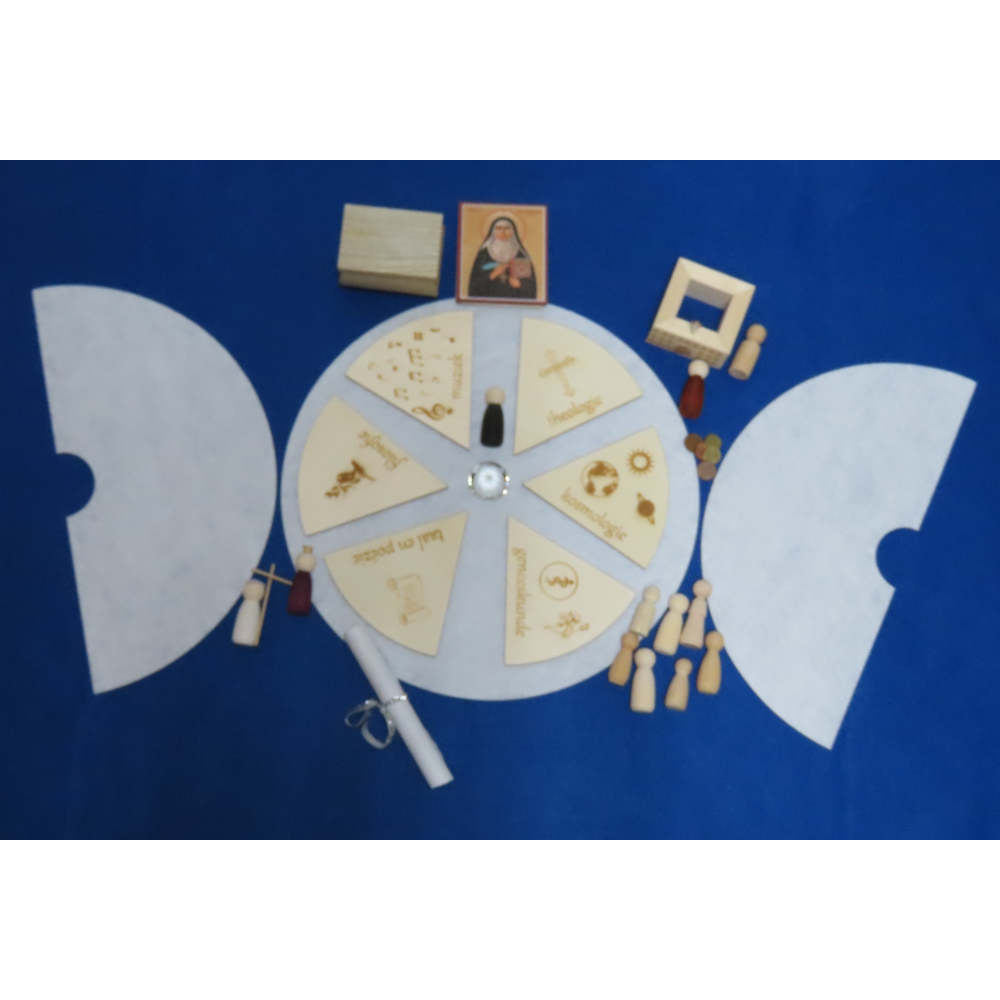 Mp3 bestand met muziek gecomponeerd door Hildegard en een apparaat om de muziek af te spelen (telefoon)