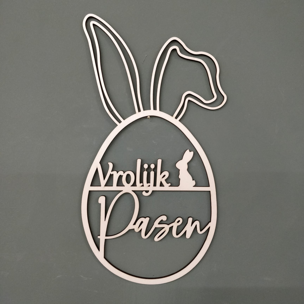 Raamhanger paasei met 'Vrolijk Pasen'