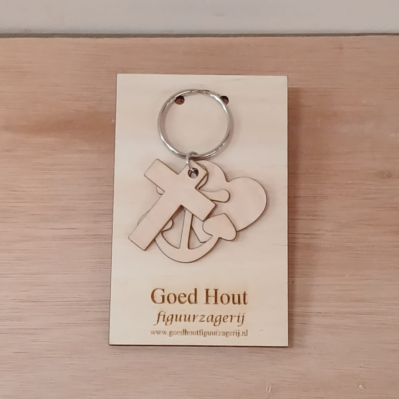 Sleutelhanger met de symbolen Geloof Hoop en Liefde