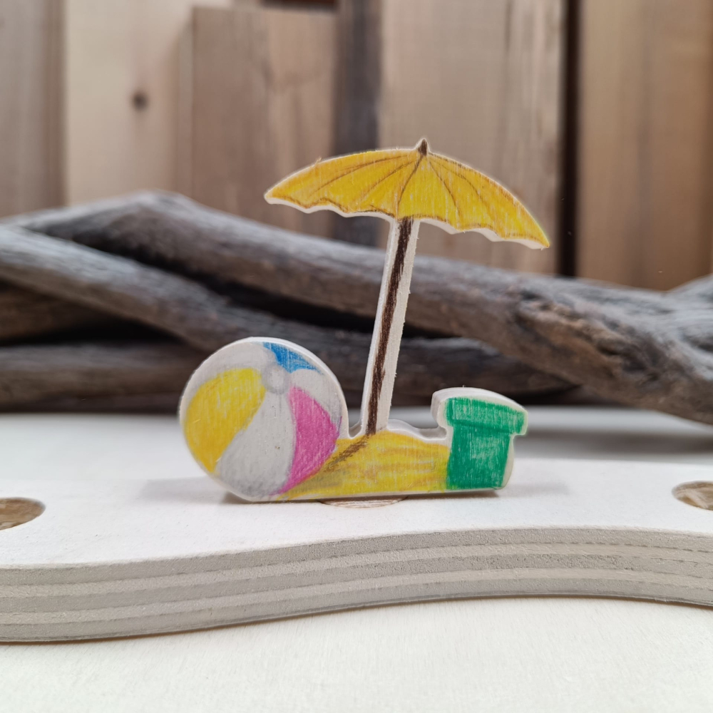 Steker geïllustreerde parasol met strandbal
